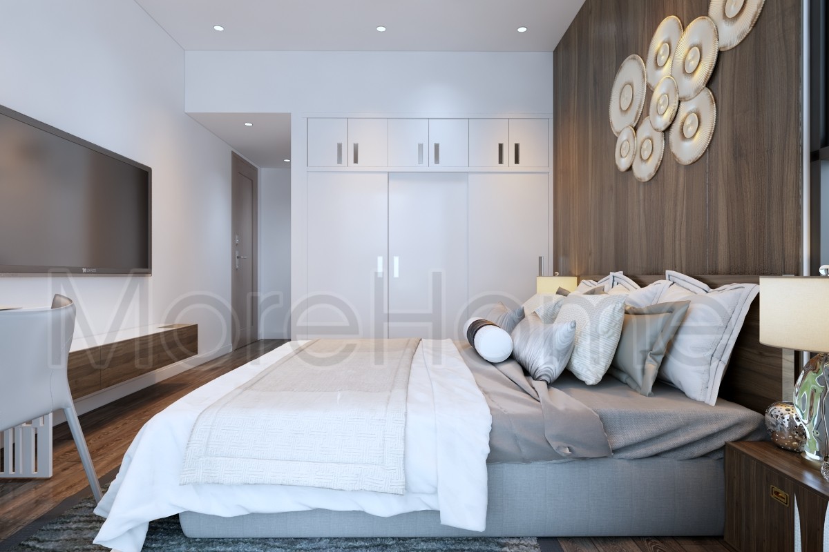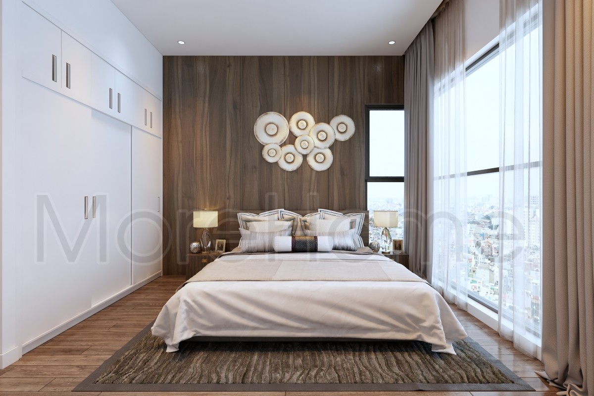 Các bạn đang được ngắm nhìn mẫu thiết kế nội thất phòng ngủ khách sạn HCM theo phong cách hiện đại. Một phong cách phù hợp với đa số người sở hữu chung cư ở Việt Nam. Cả căn phòng được KTS sử dụng màu gỗ nâu trầm ấm cúng và thân thiện.