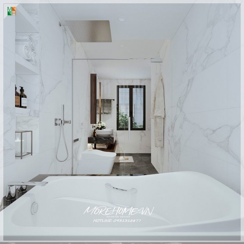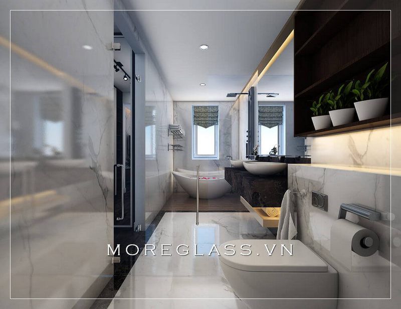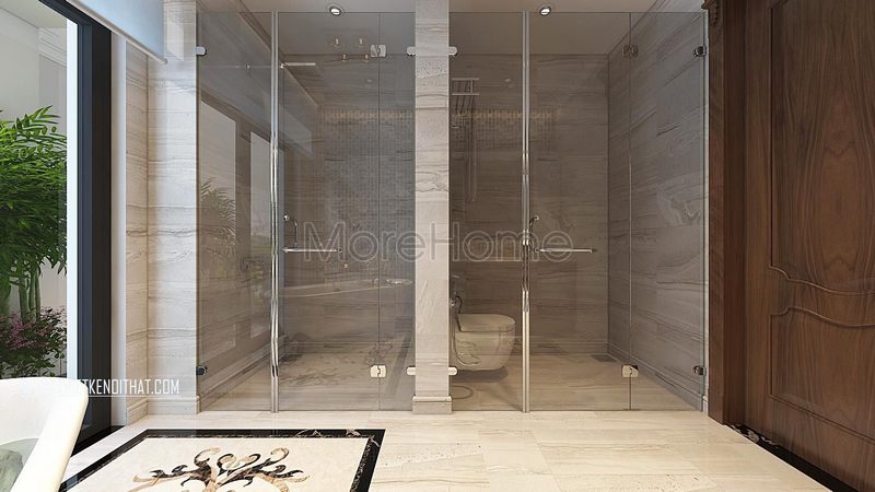 Vách tắm kính phân chia 2 khu vực mang tới sự riêng tư hiện đại đời sống tiện nghi thoải mái nhất cho gia chủ.
