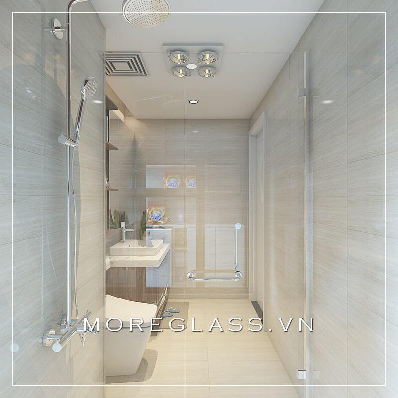 Vách tắm kính 180 độ ngăn cách giữa không gian mà không bị trật hẹp khó chịu.