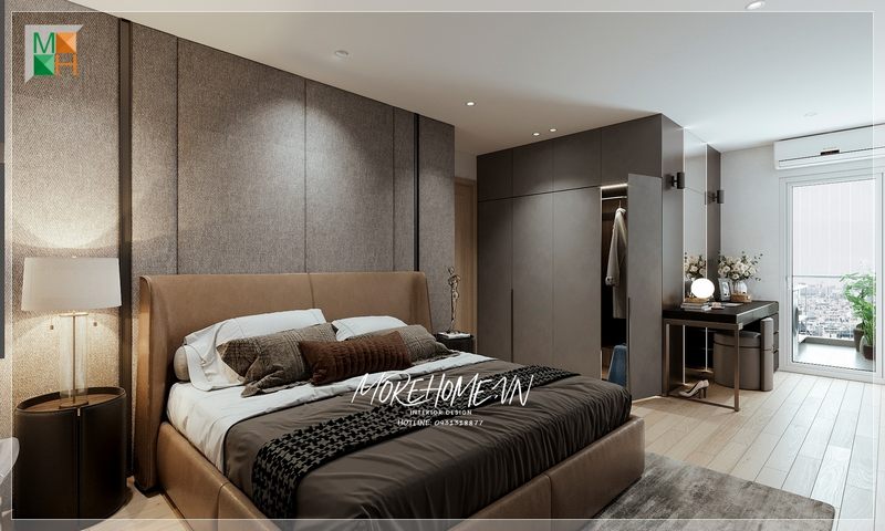 Thiết kế phòng ngủ căn hộ có bàn trang điểm tiện nghi, thoải mái trong sử dụng không gian riêng tư