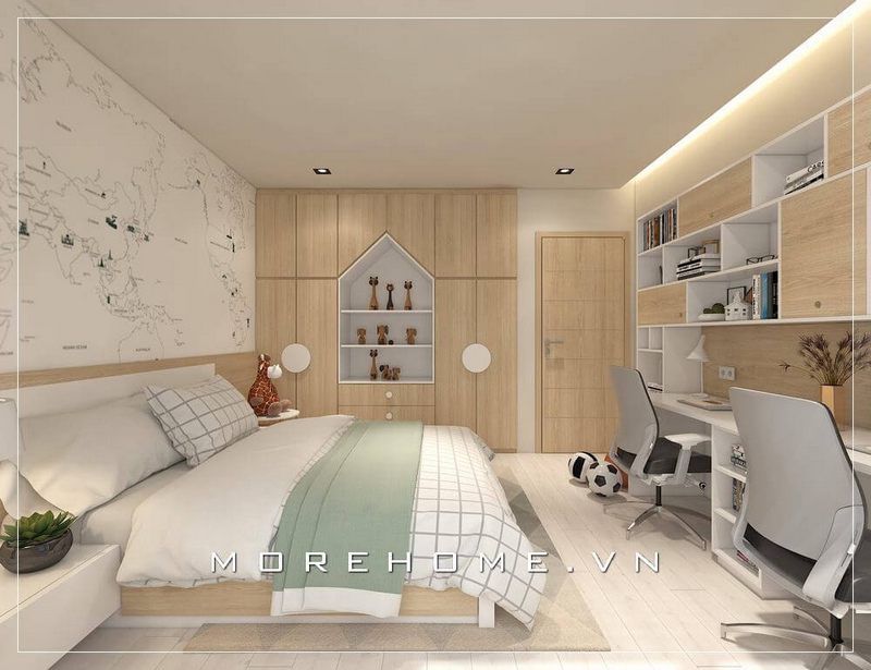 Nội thất phòng ngủ của con được bố trí 1 cái hoàn hảo từ giường, tủ hay các đồ decor trang trí, mang lại cho con một không gian nghỉ ngơi thoải mái nhất