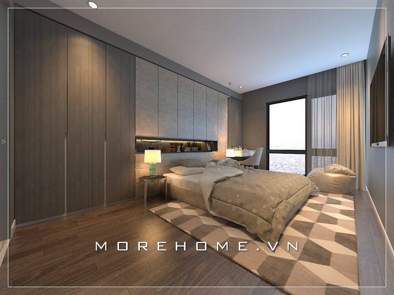 Nội thất phòng ngủ thiết kế với phong cách hiện đại bày trí sắp xếp phù hợp với không gian diện tích đem lại sự thoải mái dễ chịu khi sử dụng trong đời sống hằng ngày.