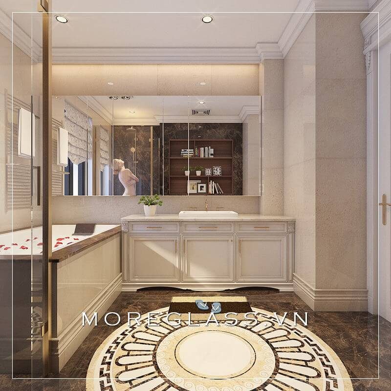 Phòng tắm hiện đại, tiện nghi sử dụng vách tắm kính cao cấp mang vẻ đẹp tinh tế thông thoáng