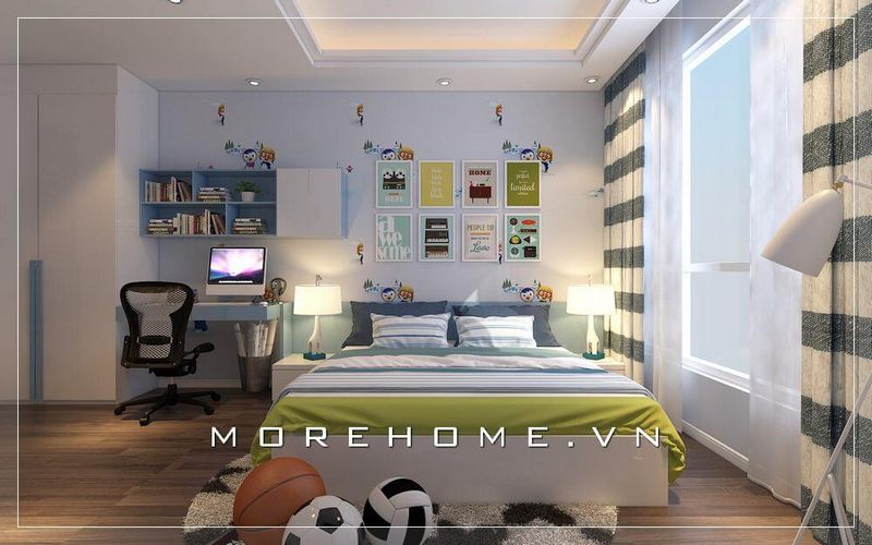 Nội thất phòng ngủ bé trai hiện đại, đơn giản mà không kém phần năng động, cá tính