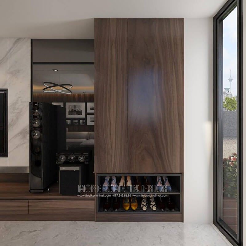 Cửa gỗ thông phòng nối phòng khách với phòng ngủ tông trầm ấm sang trọng MH04
