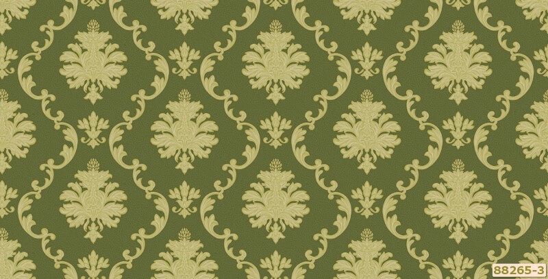 Mẫu giấy dán tường 88265-3 là sự kết hợp giữa hoa văn màu vàng trên nền giấy màu xanh cực kỳ nổi bật