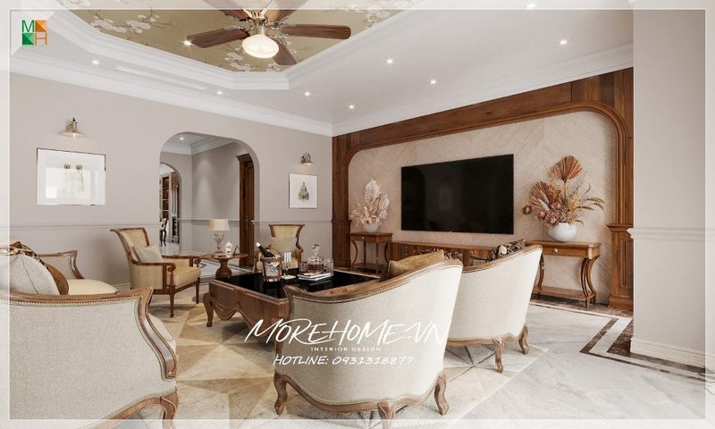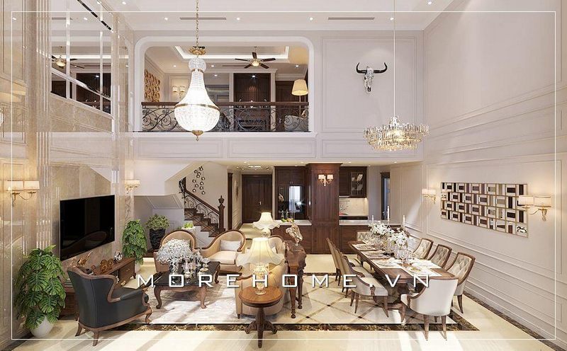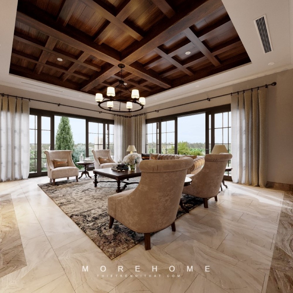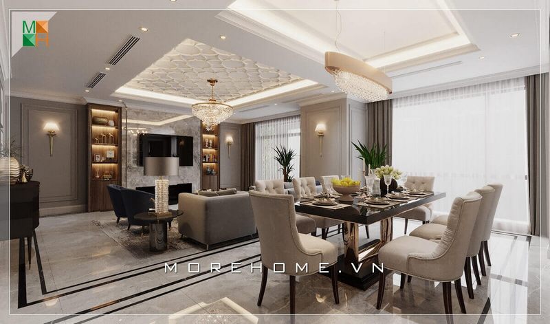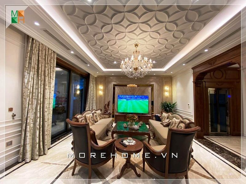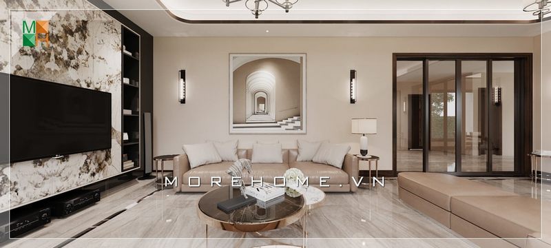 Sở hữu 1 vẻ ngoài tinh tế, mẫu thiết kế phòng khách biệt thự của Morehome luôn nhận được sự ưu ái của đông đảo các hộ gia đình.
