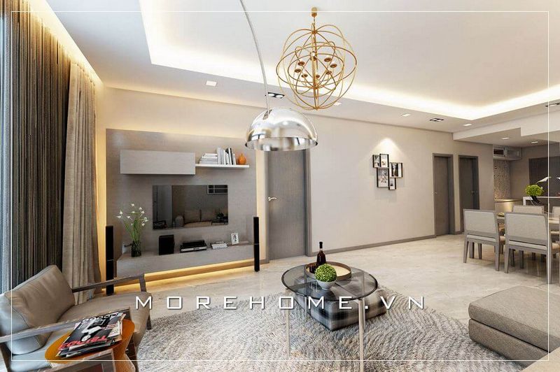 Kệ ti vi hiện đại và sang trọng là điểm nhắn trong căn phòng khách chung cư, thiết kế rất phù hợp cho diện tích căn nhà