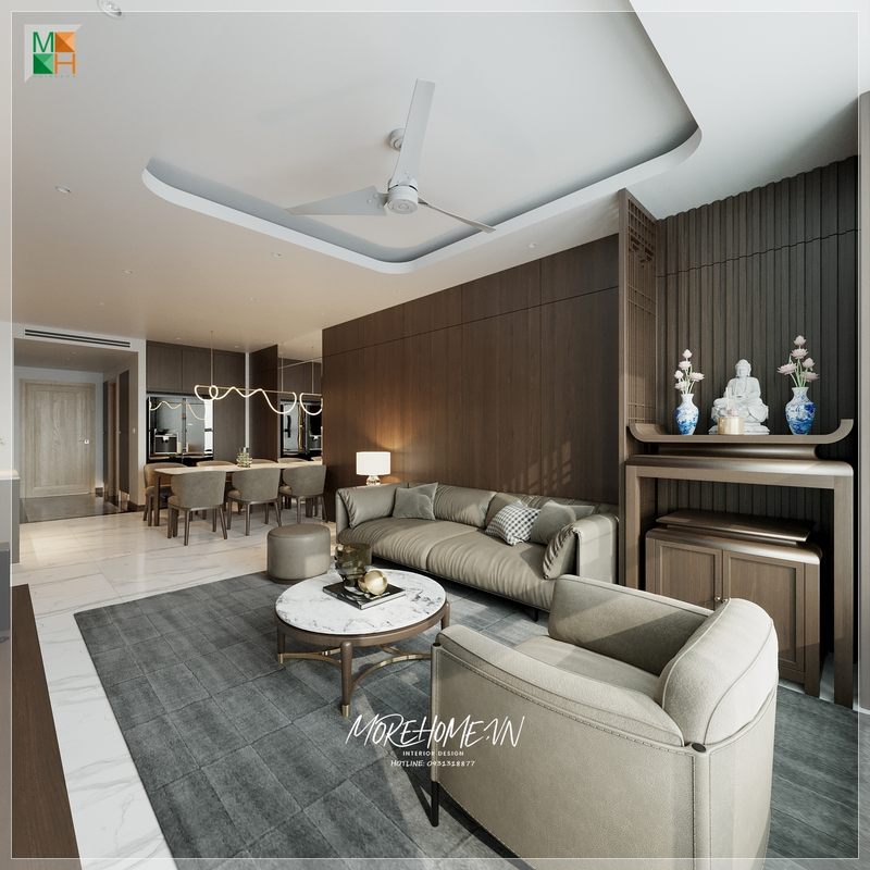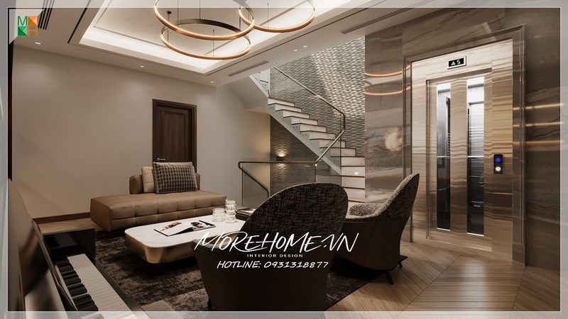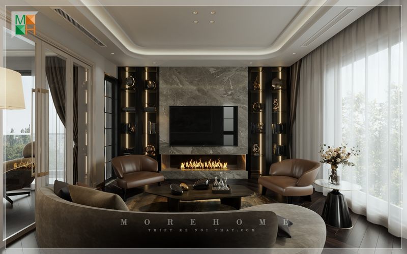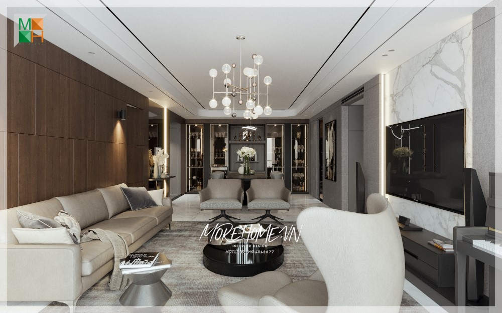 Phòng khách sang trọng hiện đại/ấn tượng được KTS MoreHome thực hiện cho gia chủ Hà Tĩnh