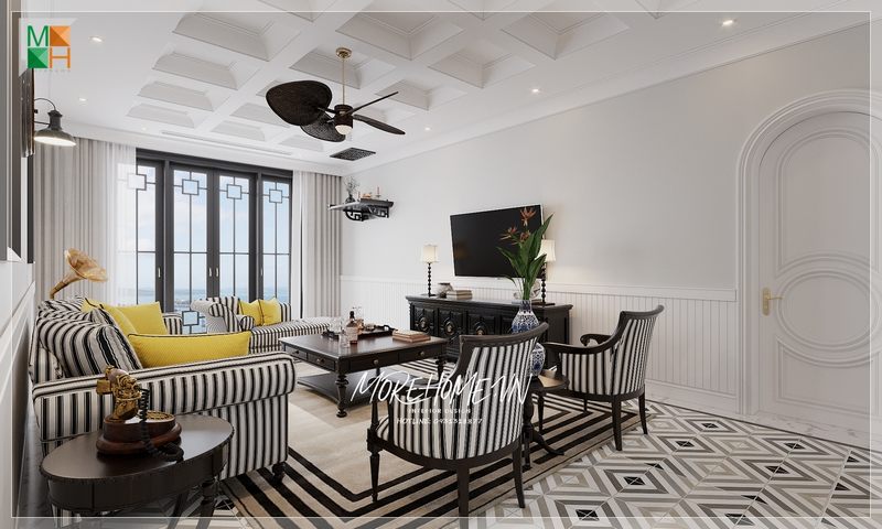 Thiết kế phòng khách chung cư, nhà phố, biệt thự theo phong cách Indochine với nội thất sơn đen nổi bật